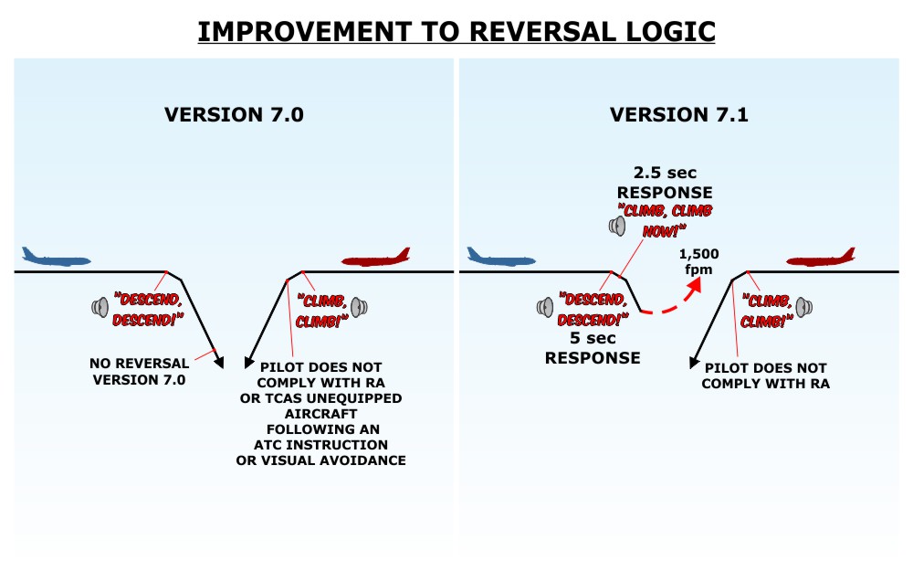 - History of TCAS, including versions 6.04, 7.0, and 7.1