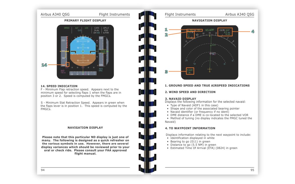 The Airbus A340-300 Cockpit Poster was drawn with a focus on both photo-realism and instructional value, allowing you to familiarize yourself with the A340 cockpit before ever stepping foot inside one! This cockpit training poster features full color vector illustrations drawn using photos and general measurements from an A340-300 cockpit, so that it provides an accurate representation of colors and dimensions, as well as a detailed portrayal of the individual controls and indicators. The A340-300 Cockpit Poster includes the flight instruments, the center pedestal, and the overhead panel. Designed for pilots transitioning to the A340-300, this poster provides excellent supplemental reference during ground school training, including the ability to practice cockpit flows.