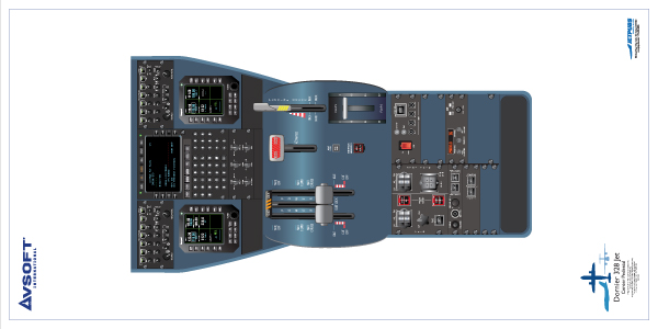 The Dornier 328JET Cockpit Poster was drawn with a focus on both photo-realism and instructional value, allowing you to familiarize yourself with the Dornier 328JET cockpit before ever stepping foot inside one! This cockpit training poster features full color vector illustrations drawn using photos and general measurements from a Dornier 328, so that it provides an accurate representation of colors and dimensions, as well as a detailed portrayal of the individual controls and indicators. The Dornier 328JET Cockpit Poster includes the flight instruments, the center pedestal, and the overhead panel. Designed for pilots transitioning to the Dornier 328JET, this poster provides excellent supplemental reference during ground school training, including the ability to practice cockpit flows.