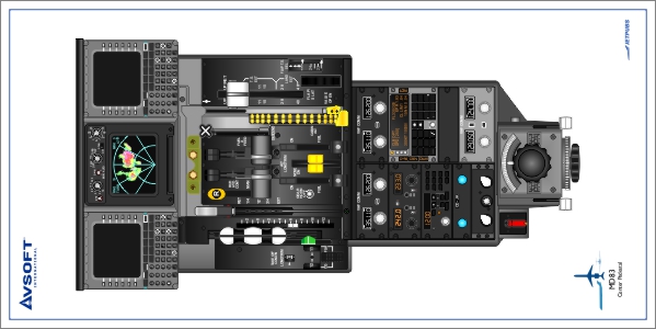 The McDonnell Douglas MD-83 Cockpit Poster was drawn with a focus on both photo-realism and instructional value, allowing you to familiarize yourself with the MD-83 cockpit before ever stepping foot inside one! This cockpit training poster features full color vector illustrations drawn using photos and general measurements from an MD-80 cockpit, so that it provides an accurate representation of colors and dimensions, as well as a detailed portrayal of the individual controls and indicators. The MD-83 Cockpit Poster includes the flight instruments, the center pedestal, and the overhead panel. Designed for pilots transitioning to the MD-83, this poster provides excellent supplemental reference during ground school training, including the ability to practice cockpit flows.